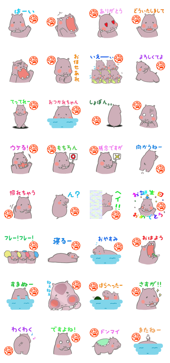 まゆみさんが使える可愛いカバの名前スタンプです。