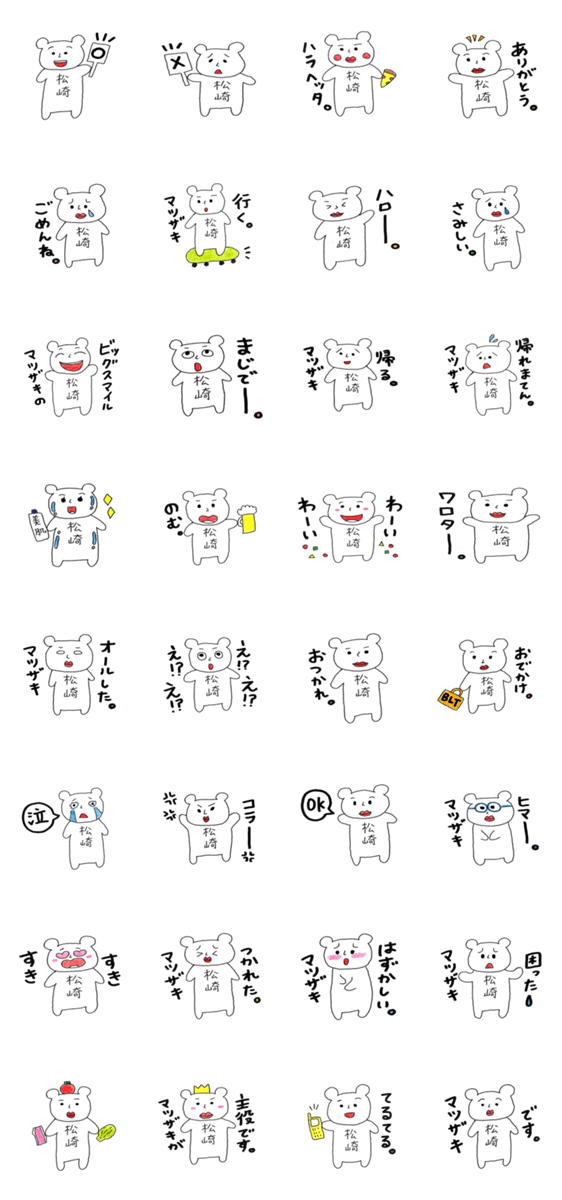 松崎 まつざき マツザキ 名前 苗字 名字 シュール クマ くま スタンプ