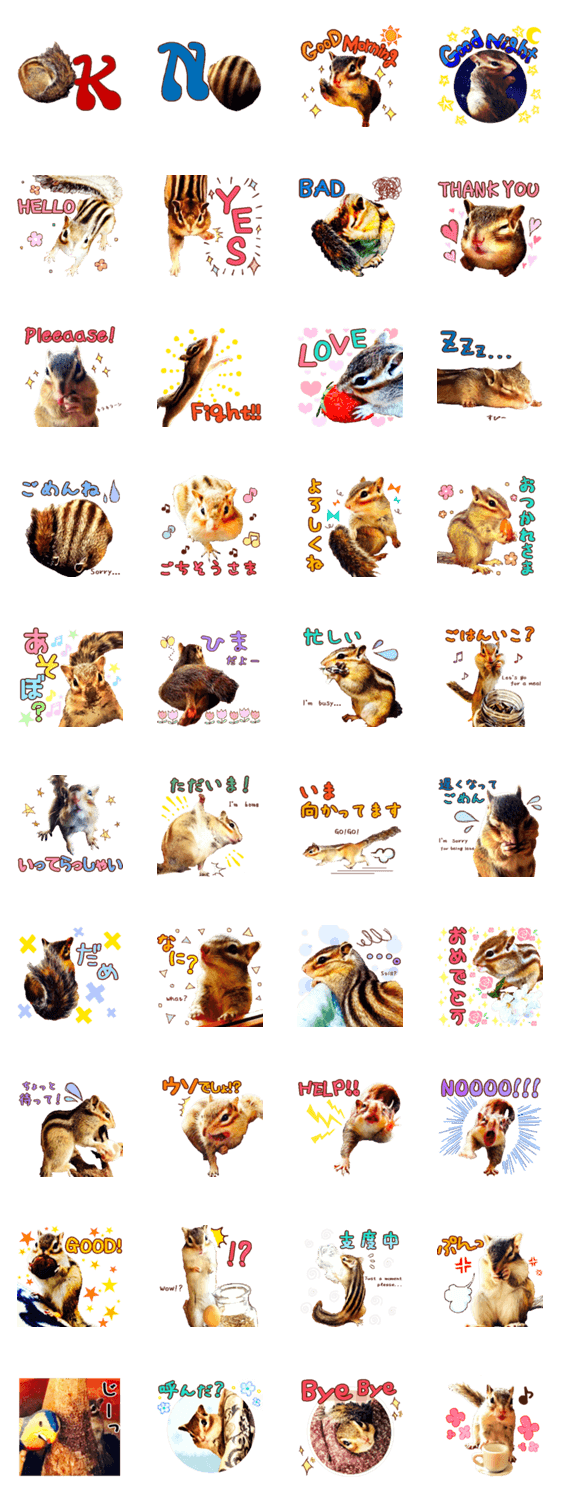 シマリスのスピカとくるみが実写スタンプになりました!使いやすい日常メッセージがもりだくさん♪