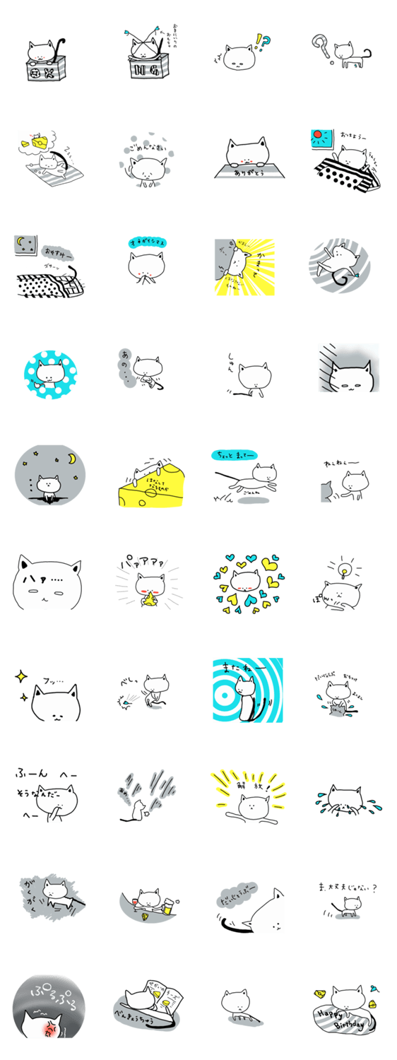 ぼんやりぼーっと生きてるネコ。だいたいぼーっとした顔をしているがそれなりに感情表現もする。ネコだけど魚よりまたたびよりチーズが大好き。