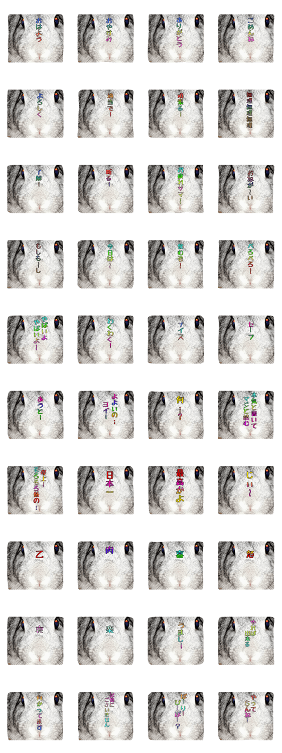うさぎのつみれさんドアップ1卓スタンプです。文字を変えるだけで色んな表情に見えてくる!?
