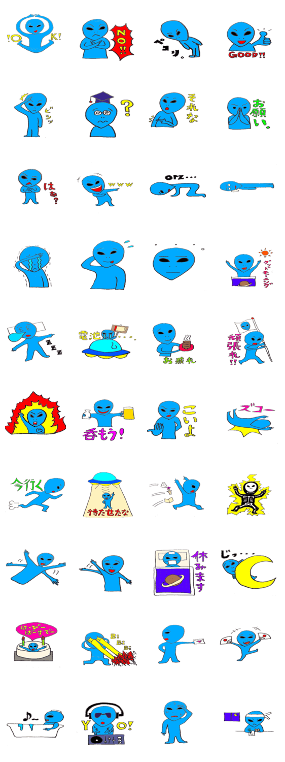 宇宙の遥か彼方から地球にやってきた『宇宙人』がスタンプで登場!宇宙のパワーであなたのLINEをゆる~く盛り上げる!