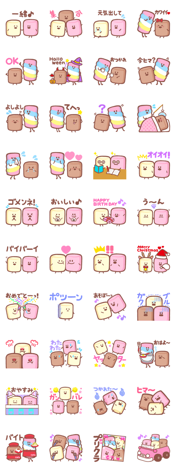 スタンプ説明 いつも仲良しなマシュマロちゃん達のスタンプ。