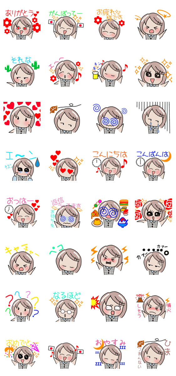 建設業界応援スタンプ 会社や日常で沢山使えるスタンプです。❬うに文字バージョン❭ 可愛い事務員さんやOLさんへ、毎日元気にエイエイオー♪