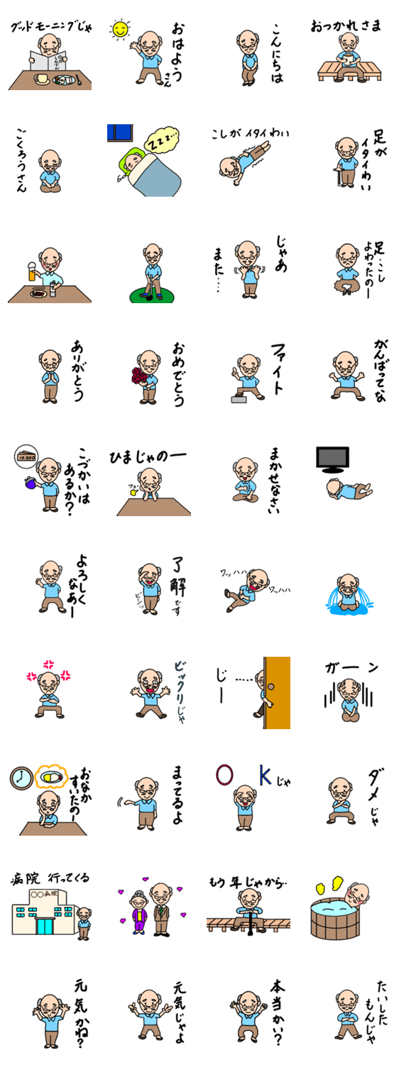 ほのぼの系優しいおじいちゃんの日常会話です。お孫さんや家族に又お友達へと幅広く使えます。