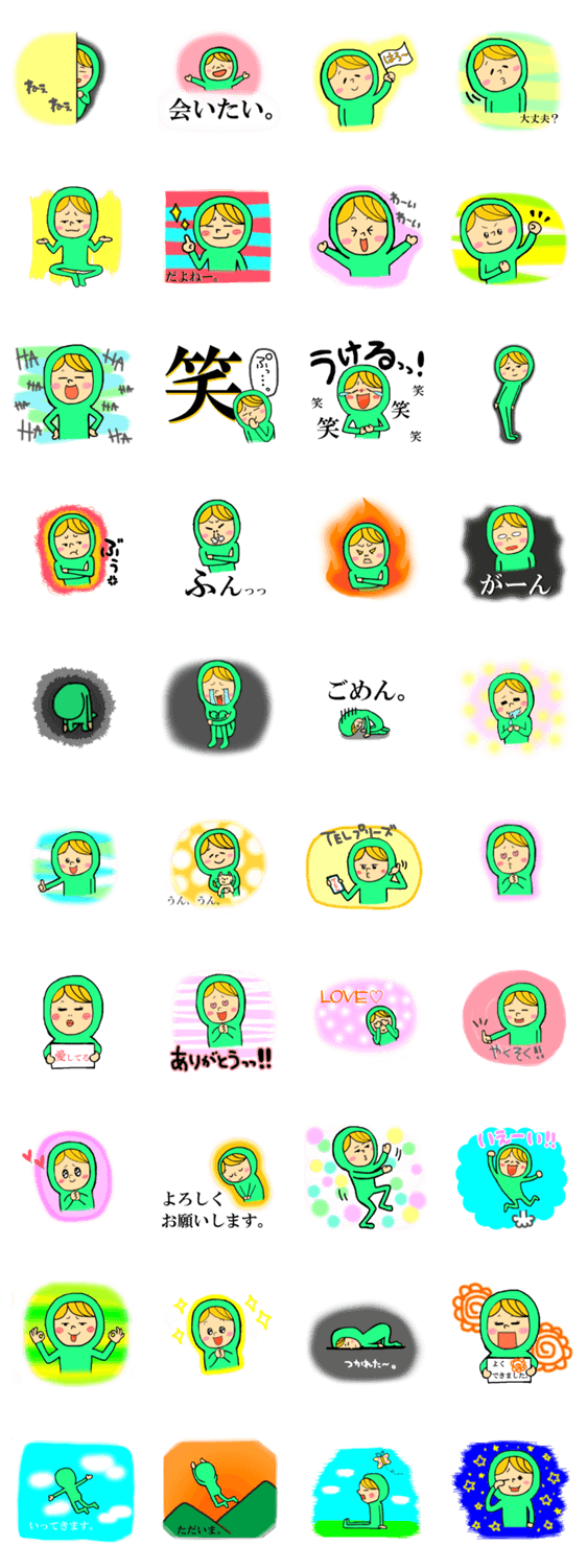 ぐりーん坊や。スタンプその2です。かわいいぐりーん坊やで、会話を楽しんでください~!!