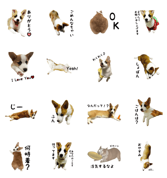 コーギー犬ごん太眉毛のベルちゃん -LINEスタンプマニア