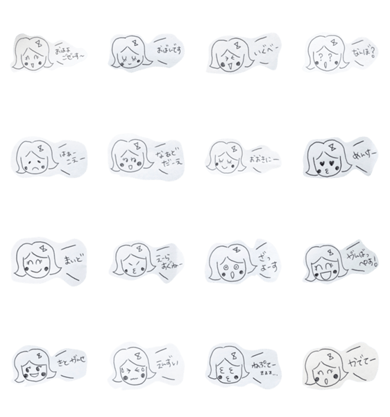 ボールペン描きのスタンプです。まるなかちゃんの岩手県宮古市の宮古弁シリーズ①。女の子も使いやすいと思います( ¨̮ )