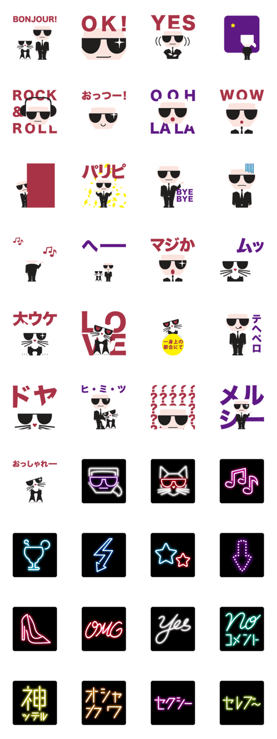世界的なファッション デザイナーの「カール・ラガーフェルド」と、愛猫「シュペット」ちゃん。ONもOFFも、チャーミングなスタンプでおしゃれに盛り上がっちゃおう!
