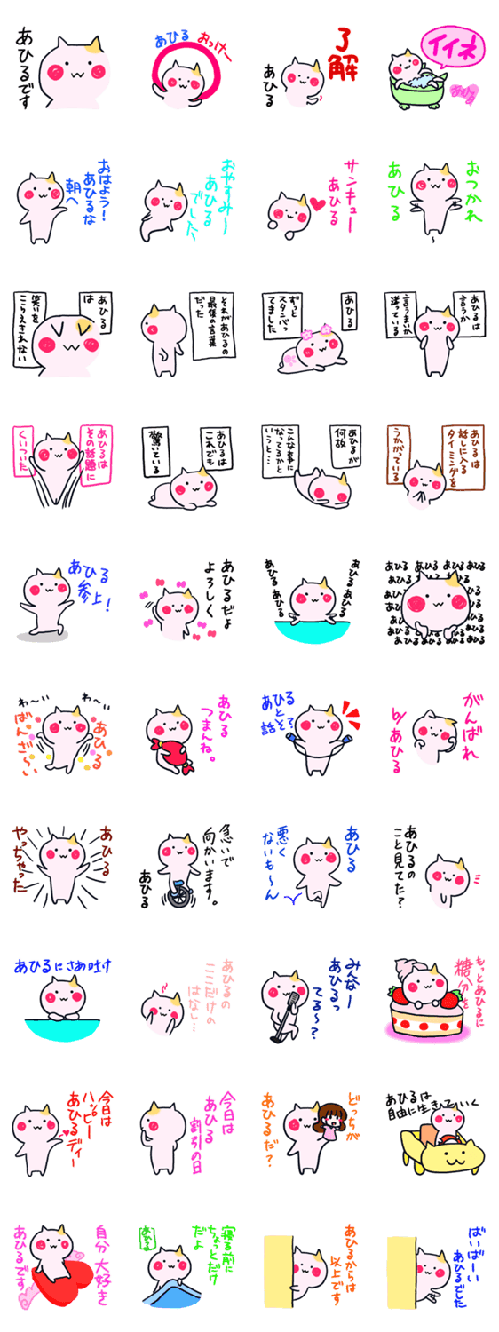 白ネコのあいうえお・・・ってるスタンプ