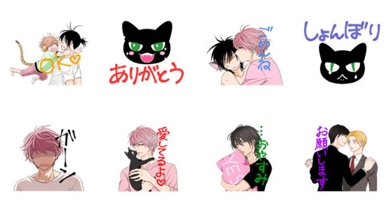 人気BL作家・左京亜也の「クロネコ彼氏」シリーズが初のスタンプに!! 圭市と真悟、そしてクロネコがメッセージを伝える胸キュンスタンプが登場!!
