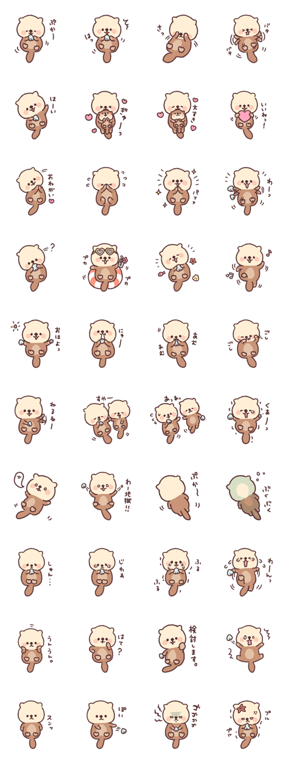 水族館の人気者ラッコくんのスタンプです。ラッコのおててはとにかくかわいい。そんなおててを使ったいろんな仕草を入れてみました。