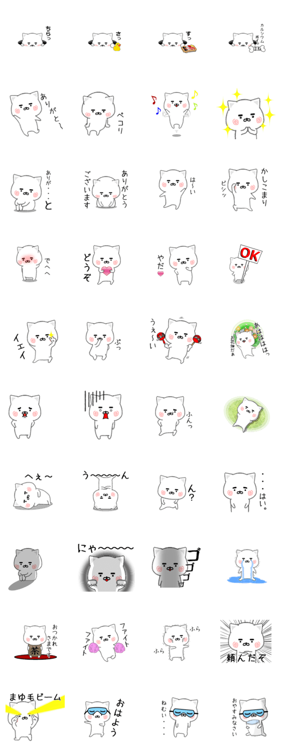 白ネコのあいうえお・・・ってるスタンプ
