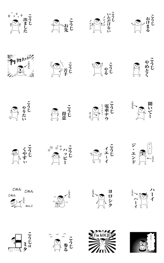 コウジくん、コウジさん、コウジちゃん、高次、浩二、浩司、幸司、工事、幸次さんが使う動く面白名前スタンプ。