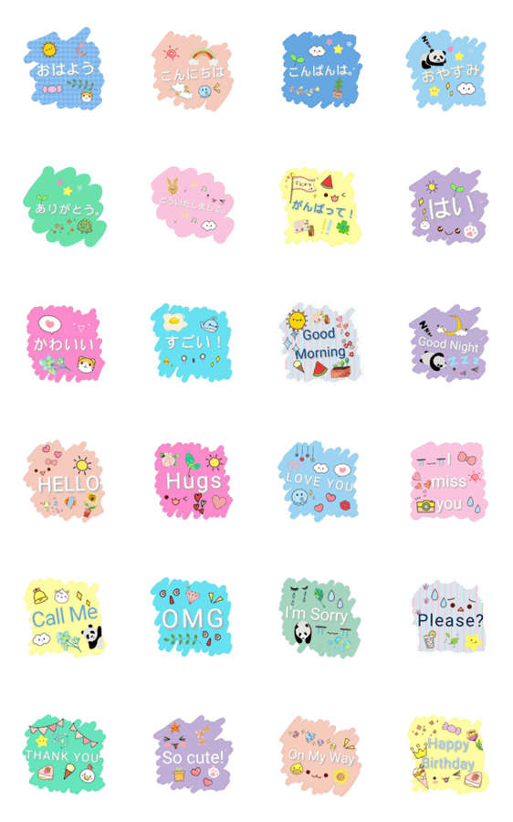 These stickers contain "JAPANESE" & "ENGLISH" "messages"! Make your chatroom "colorful" and full of cuteness with these "kawaii" text! :3 "cute"