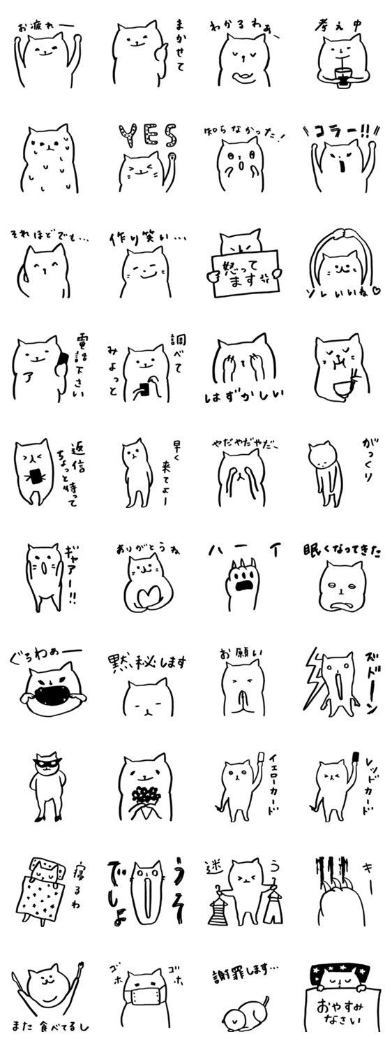 白ネコのあいうえお・・・ってるスタンプ