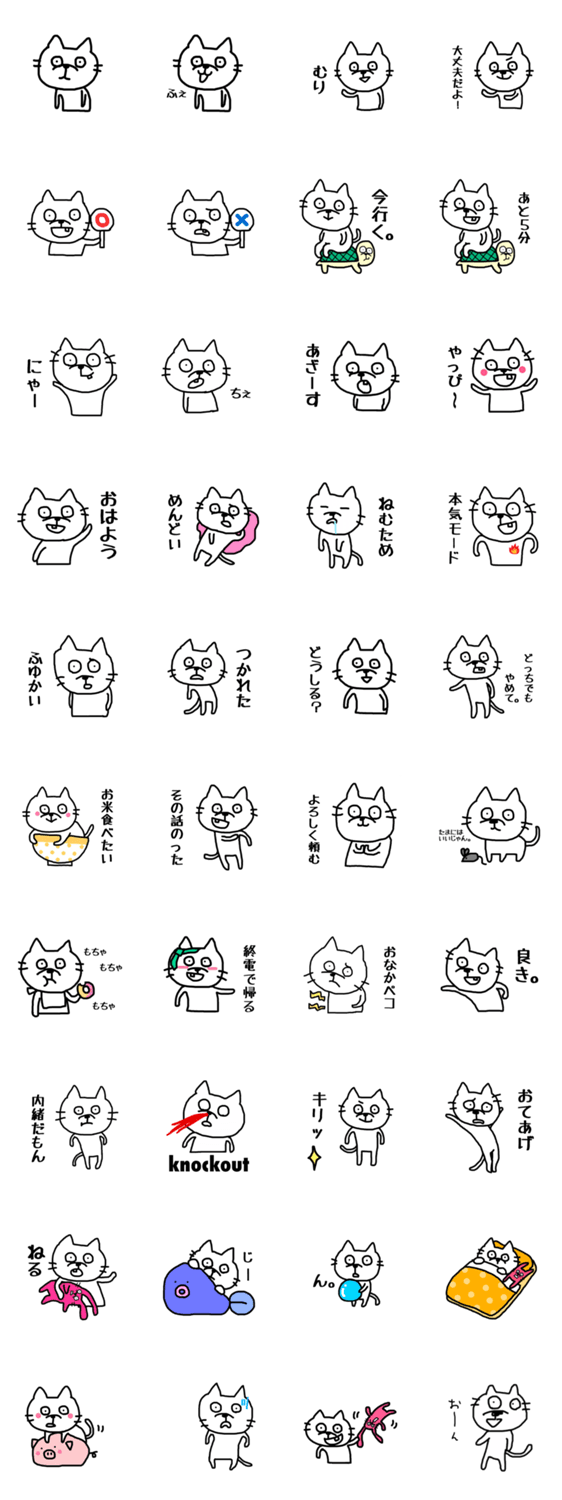 白猫のねこたろす。ちょっと丁寧に描きました。日常会話で使えるやつ。