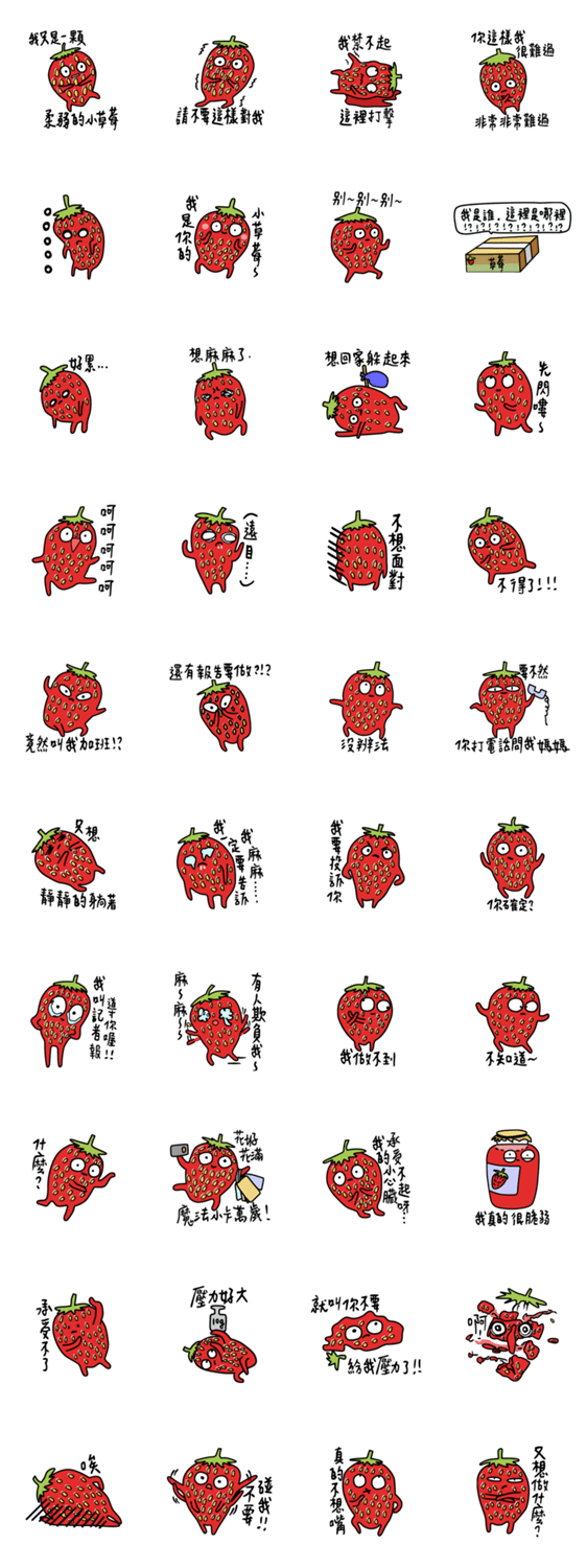 | スタンプ説明 | Don't press me or I will become strawberry juice |