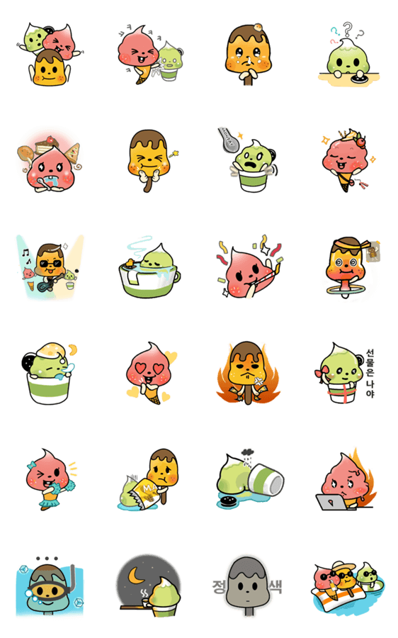 | スタンプ説明 | それぞれのアイスクリーム達が冷蔵庫の外で過ごす日常。 冷たいフレンズと一緒なら炎夏にも平気! |