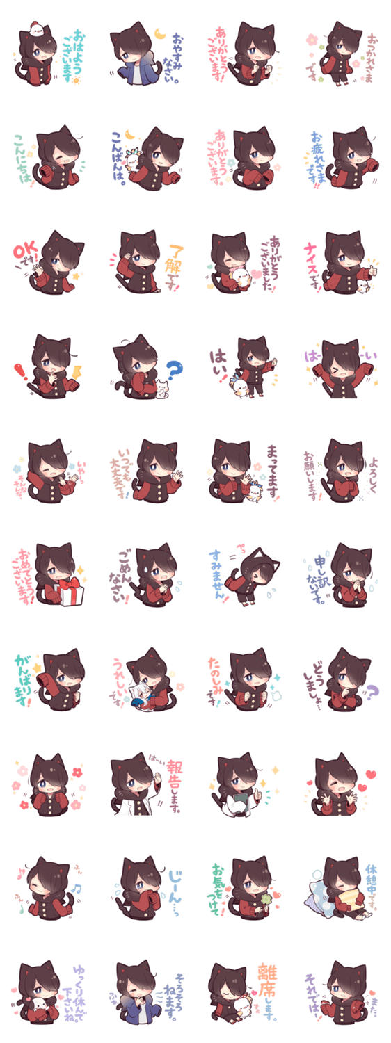 毎日使える黒猫の男の子、黒猫少年の敬語スタンプです。丁寧な挨拶やリアクションが沢山入っています。
