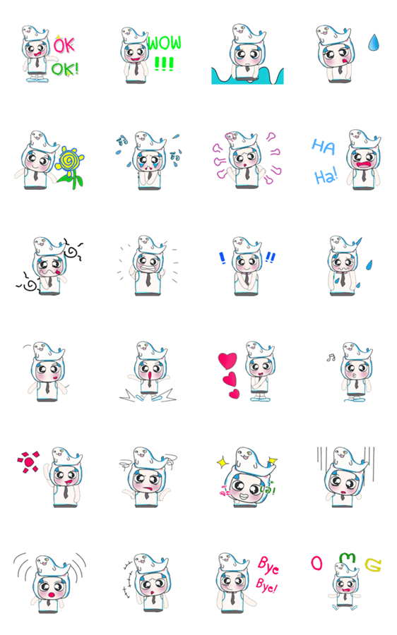 白ネコのあいうえお・・・ってるスタンプ