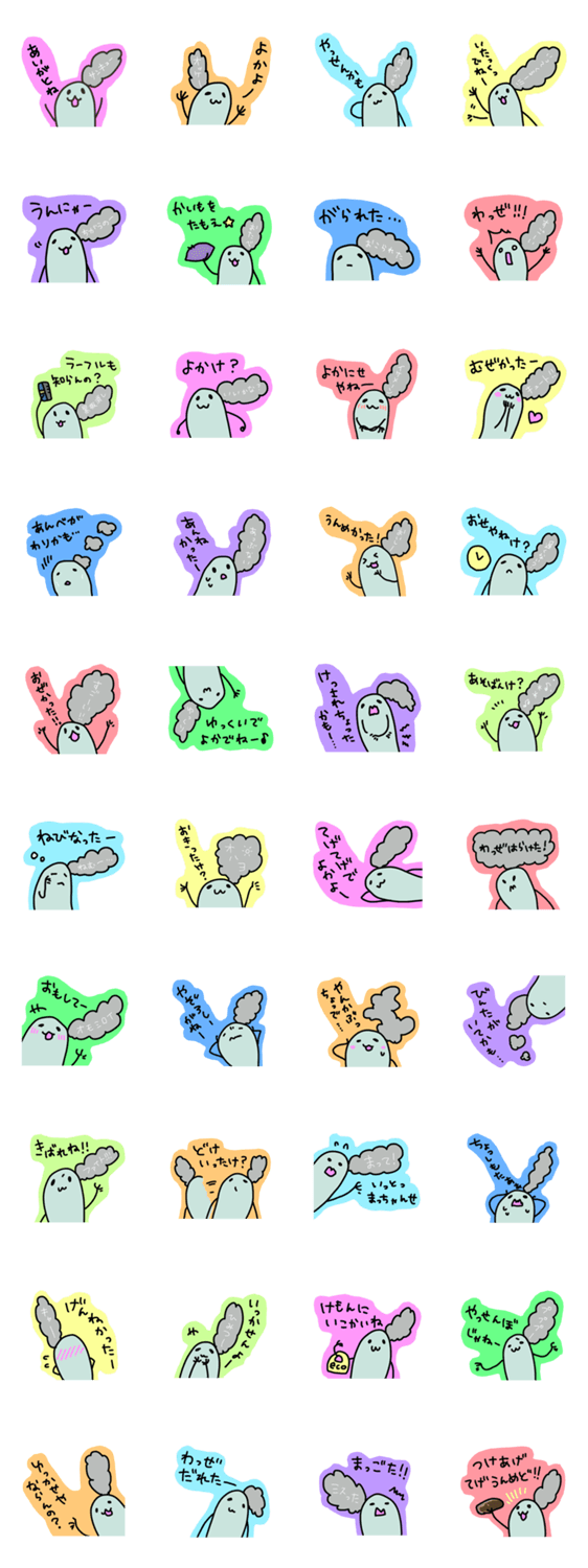 もくもくの灰がチャーミングな桜島ちゃんです。言い回しの地域差であると思いますが、鹿児島弁全開のスタンプです。使いどころが分からないのずんばいですがよ。