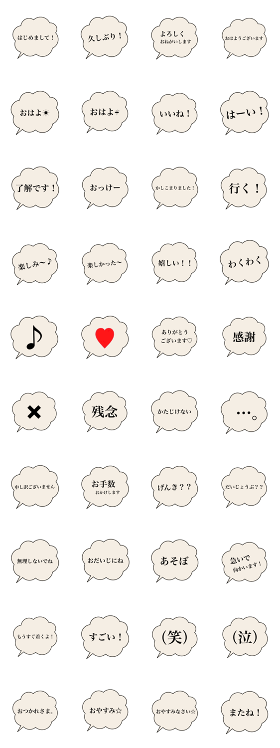 何かのスタンプと合わせて、セリフにして下さい。もちろん単品でも。よく使うオーソドックスなものばかり(笑)