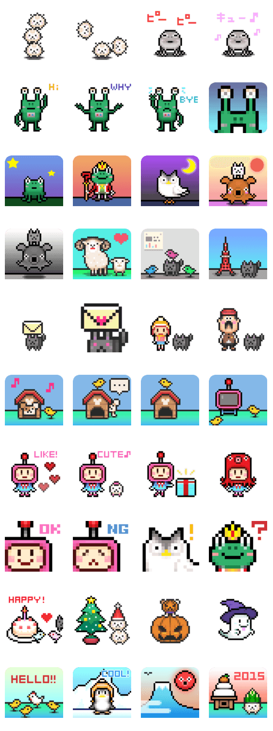 | スタンプ説明 | PixelArt(ドット絵)のコミカルなキャラクター達のスタンプです。 |