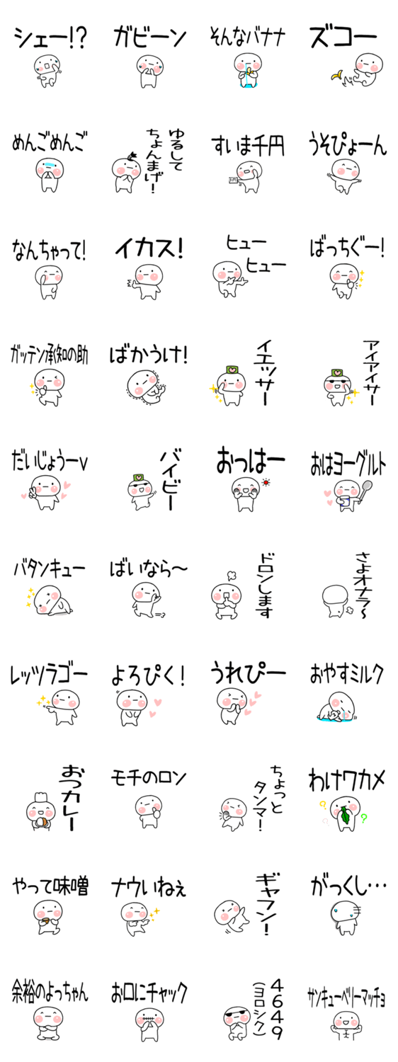 大文字で見やすい日常で毎日使えそうな死語を話す「死語くん」ダジャレも少し入れています。しろくてまるいキャラクターです。