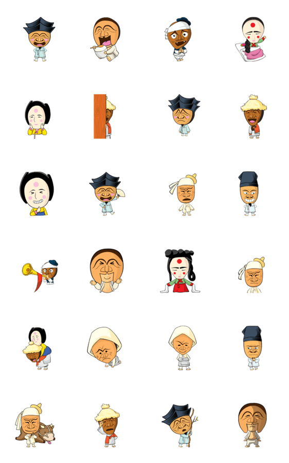 | スタンプ説明 | Hahoe Village in the peaceful forest, where there are cute friends and cute friends live in harmony. It is what they do for Korean traditional culture. |
