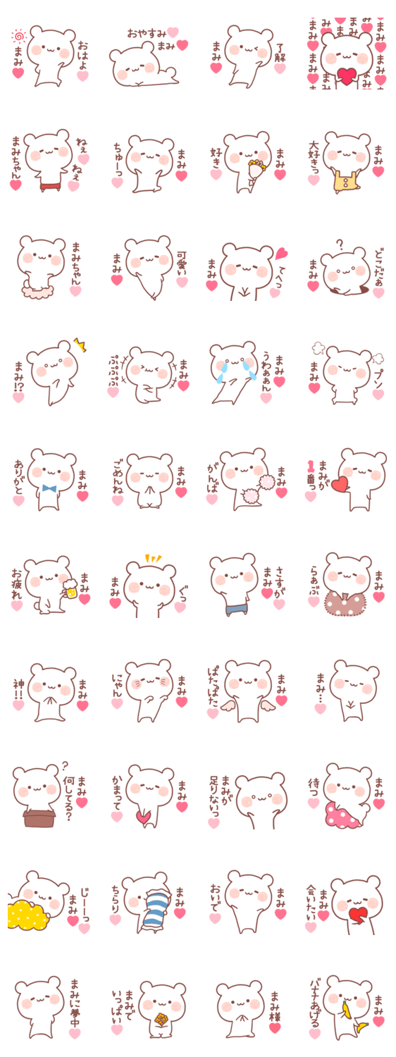 まみこ、まみえ、まいみ、まーちゃん、まっちゃん、まあちゃんなど、あなたの大切なまみちゃんへ送ってください。カップルお友達向け名前スタンプ。