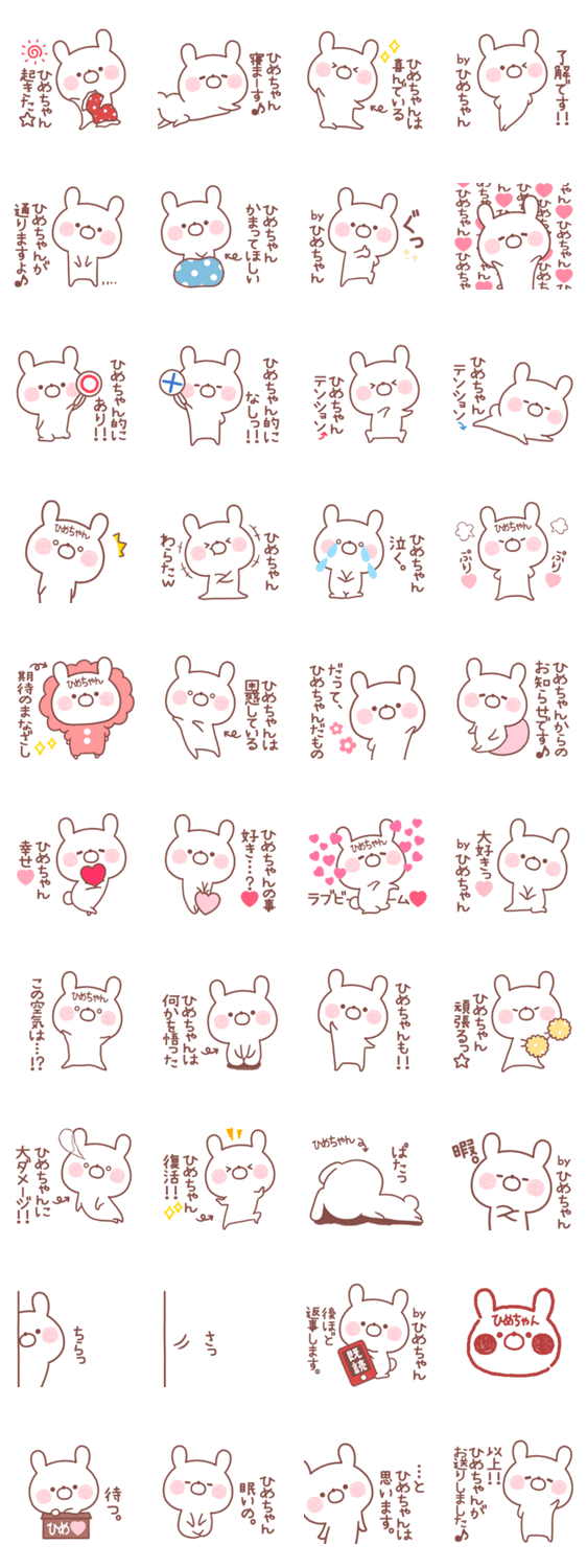 ひめか、ひめこ、ひめな、ひめあ、ひめの、ひめり、ひーちゃん、ひめちゃんが使える名前スタンプ。カップルやお友達ご家族へ、毎日使える自分専用スタンプです。