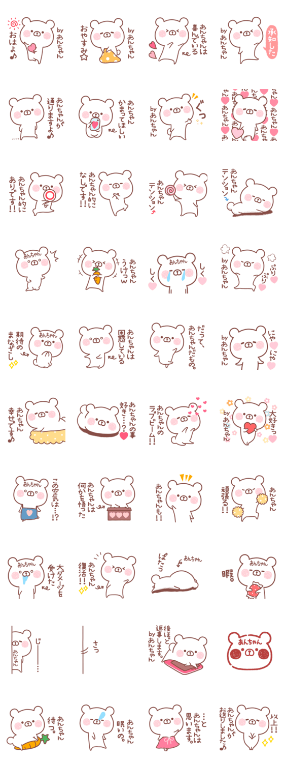 あんな、あんず、あんり、あんじゅ、安藤、あーちゃん、あっちゃん、あんちゃんが使える名前スタンプ。カップルやお友達ご家族へ、毎日使える自分専用スタンプです。