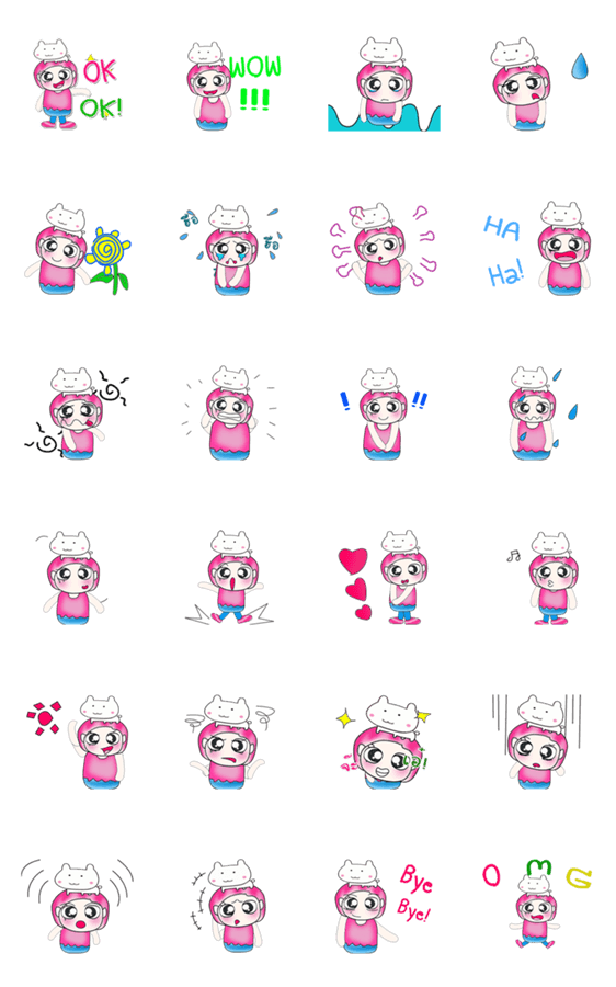 白ネコのあいうえお・・・ってるスタンプ