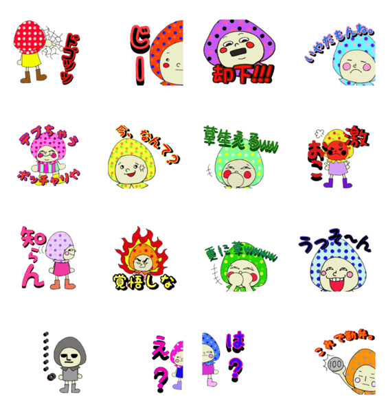 ポップでカラフルなずきんをかぶった仲間たちの塩対応スタンプです。