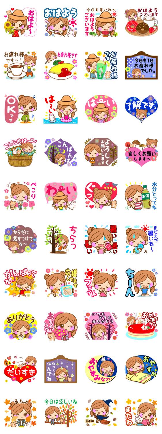 「やさしい日常用語」の「かわいいカノジョバージョン」です☆夏から秋に長〜く使える♪大人なスタンプです。 「うさくまラブラブスタンプ」のうさくまちゃんも一緒です♥