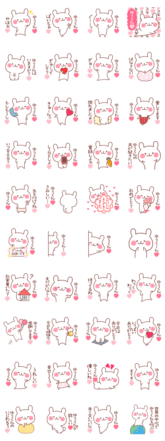 ゆうき、ゆうた、ゆうじ、ゆうすけ、ゆうや、ゆうしょう、ゆうま、ゆうちゃん、ゆーくんなど、あなたの大切なゆうくんへ送ってください。カップルお友達向け名前スタンプ。