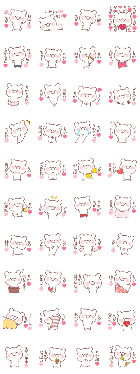 ちーちゃん、ちっちゃん、ちかこ、ちかえ、ちかみ、ちかげなど、あなたの大切なちかちゃんへ送ってください。カップルお友達向け名前スタンプ。