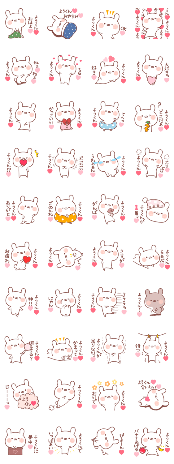 ようすけ、ようた、ようじ、ようま、よっくん、よーくん、よっちゃん、よーちゃんなど、あなたの大切なようくんへ送ってください。カップルお友達向け名前スタンプ。