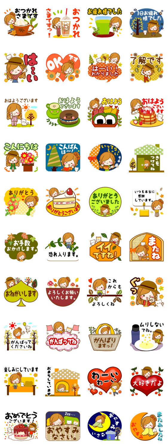 大人の女性向け♥気遣いのあるやさしいメッセージがいっぱいで毎日使いやすい言葉だけを選びました。あったかい秋冬♦暖色カラーがかわいい♥「ほのぼのカノジョ」シリーズ