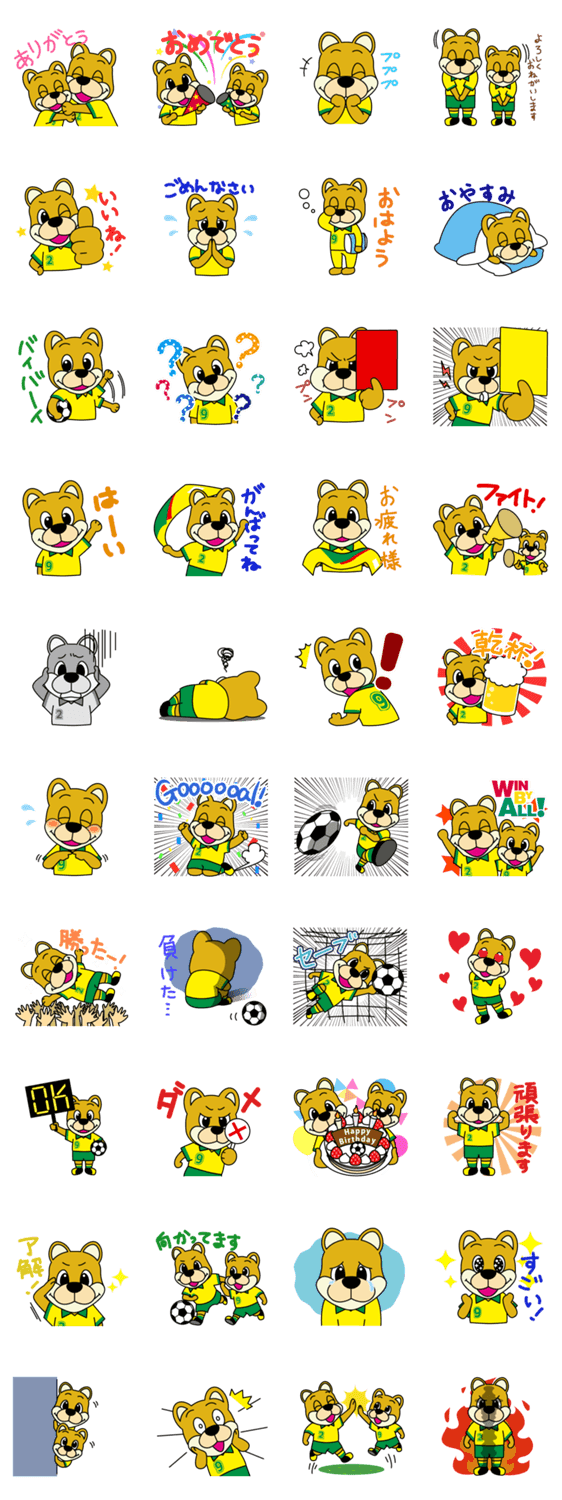| スタンプ説明 | お待たせしました!Jリーグのジェフユナイテッド市原・千葉公式スタンプです。 ジェフィ(2番:兄)と、ユニティ(9番:弟)が皆さんのトークをアシストしちゃいます! |