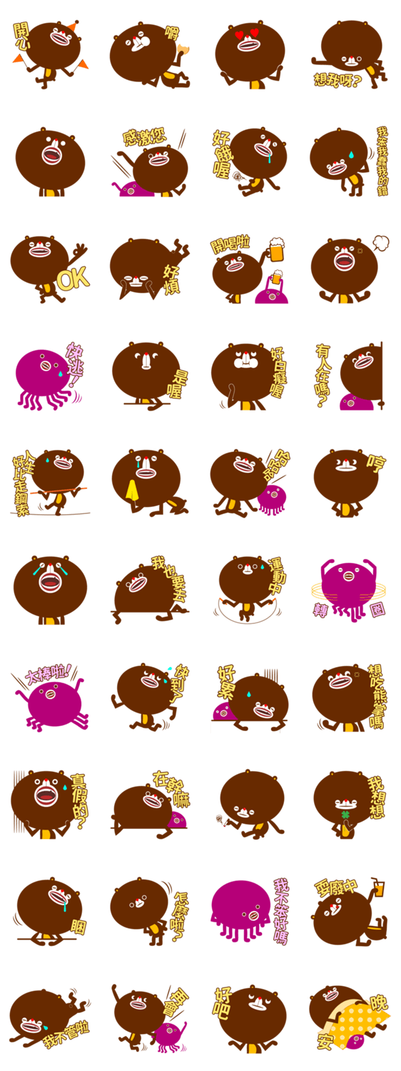 | スタンプ説明 | Daily life of BearBubble Senior & TaKo Junior. |