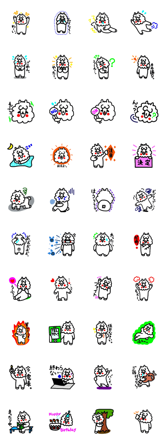 たれ目がチャームポイントのアルパカのスタンプです。(改訂版)