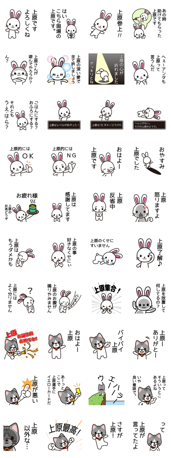 全国の上原さんの為のスタンプです。上原さん本人は勿論、上原さんの周りの人も上原さんに使ってあげましょう。