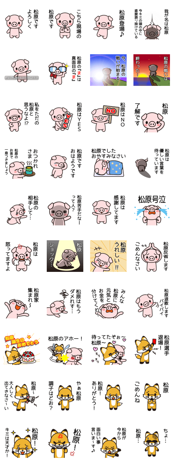 全国の松原さんの為のスタンプです。松原さん本人は勿論、松原さんの周りの人も松原さんに使ってあげましょう。