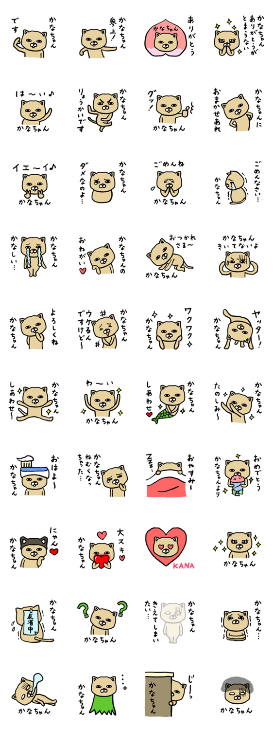 「かなちゃん」と呼ばれている人専用スタンプです。猫で擬人化しています。