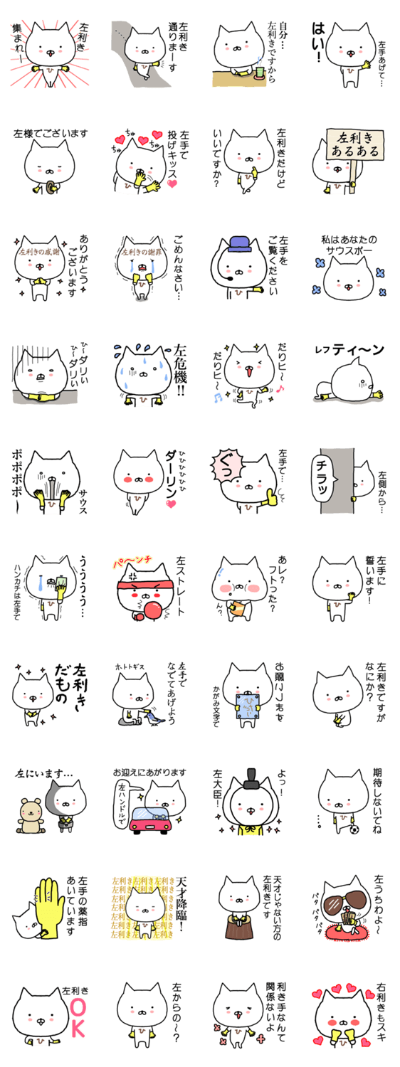 左利きの左利きによる左利きのためのスタンプです。 「左利きあるある」「左ダジャレ」「日常にも対応」