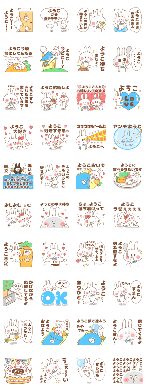 男性から女性に送る名前スタンプ第4弾。名前が「ヨウコ」の方へ。ようこ、ようこちゃん・よーこ・ヨーコ・よう子・洋子・陽子・容子・葉子・曜子・など