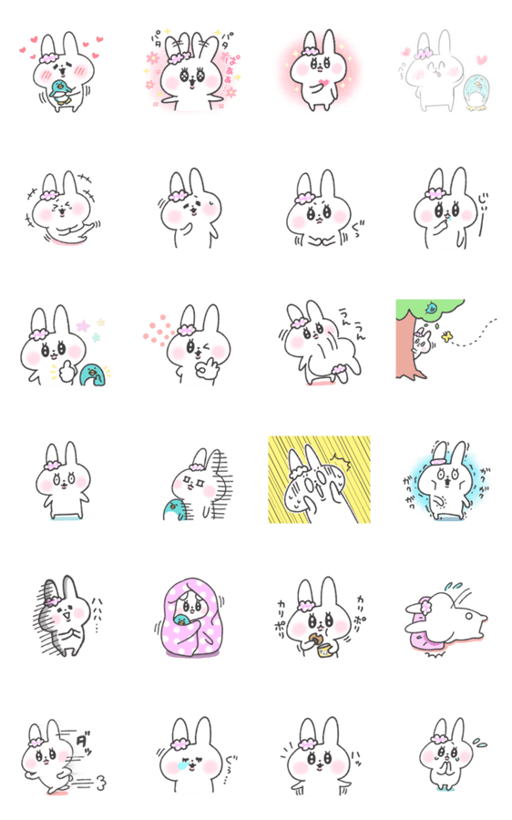 女子なうさぎのスタンプです。家族、友達、恋人との会話に使ってください。文字が少ないバージョンです。