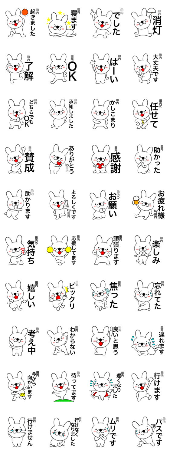 【田内】が使う主婦が作ったデカ文字兎 -LINEスタンプマニア